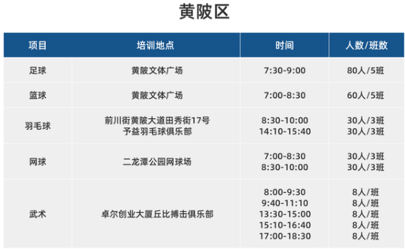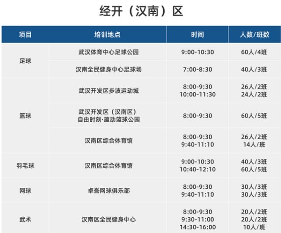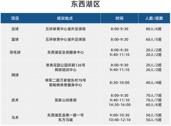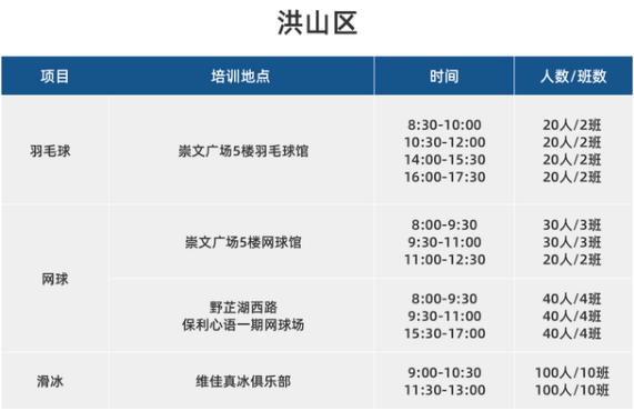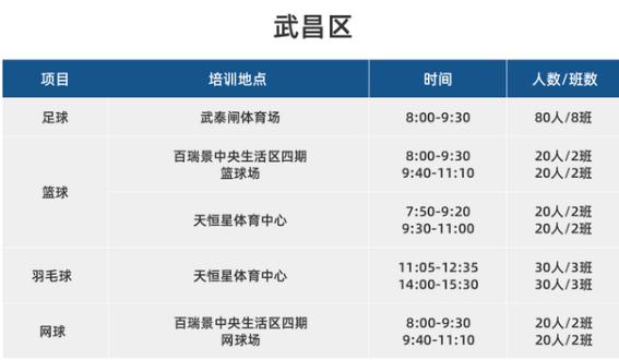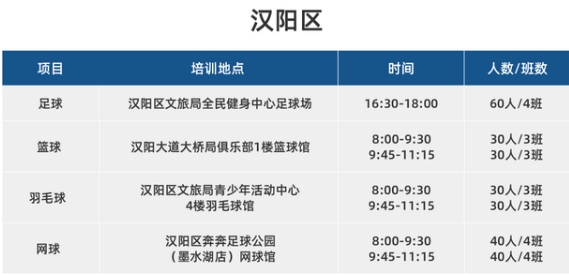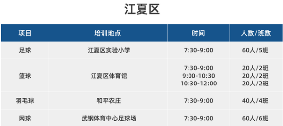 2020年小学生夏季体育夏令营开营了,目前共免费开设7个项目,比较热门的足球、羽毛球、篮球等项目大家要抓紧时间,武汉市各区名额有限,同时还有年龄限制,你家孩子符合审美项目条件,距离居住地远吗,下面我们来看一下。