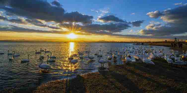 荣成烟墩角,有从遥远的西伯利亚远道而来的天使—洁白的天鹅,交织着纷飞而下的鹅毛大雪,还有别具一格的海草房,在大雪覆盖下,让这个原本朴素的小小渔村,变成了梦境一样唯美的世外桃源。