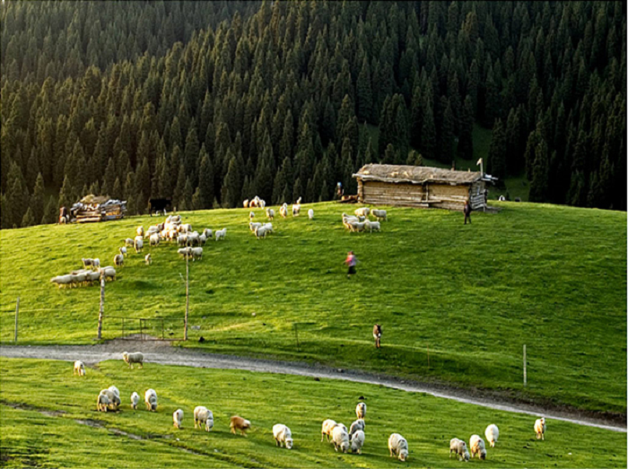 有着四千万年生命历史的雪岭云杉,主要分布于新疆天山北坡的雪岭、昆仑山西部和准格尔西部的山地。广袤的云杉覆盖在山体,绵延1800公里。在巍巍天山深处,它苍劲挺拔、四季青翠、攀坡漫生、绵延不绝,犹如一道沿山而筑的绿色长城。十月下旬开始,西伯利亚的寒流带着雪花覆盖整个雪岭云杉区域,广袤的森林银装素裹,万籁俱寂。