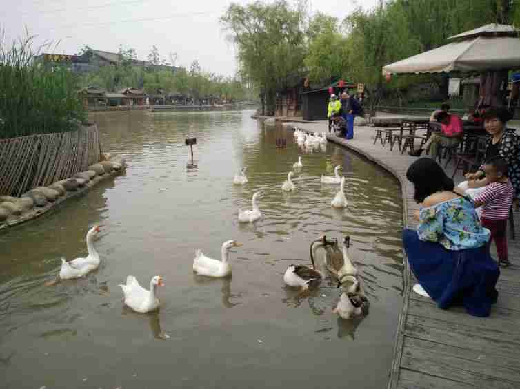 这里是素有“北方版丽江”“关中版清明上河图”美誉的中国第一水街。景区内清流潺潺、禽鸟欢戏、竹排轻摇,呈现出一派水乡风情。 弯延的小路九曲回肠;绵绵丝竹随风飘荡,宛若置身仙境,别有一番韵味。景区内建筑风格是以仿古为特色,聚集关中淳朴、粗犷等特点建设而成。一家人、三两知己、一杯清茶,置身其中仿若时间都慢了下来。