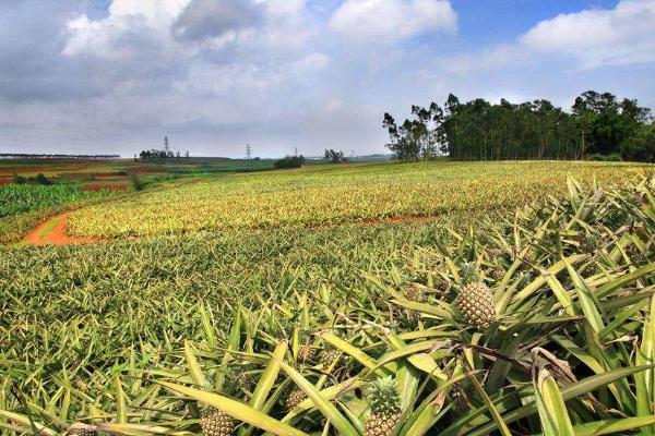 湛江徐闻,中国大陆最南端的湿热海风、丘陵红土地,催生了全国三分之一的菠萝产量,几万亩种植菠萝一望无际,青翠连天,碧波起伏,犹如翡翠之海,每逢盛夏,田野上空荡飘着菠萝的清香,真可谓“菠萝的海”。徐闻与美国夏威夷处于同一纬度,那里有绵延的海岸线和美丽的珊瑚,也有起伏的丘陵和分割成块垒的土地。蓝色的海岸充满了阴性的宁静之美,块垒的土地有的才翻垄,有的则密密麻麻长满了顶着黄金色菠萝的菠萝树,两种土地形成简朴的几何构图和强烈的色彩对比,大自然在这里显示出非凡的造化之功。
