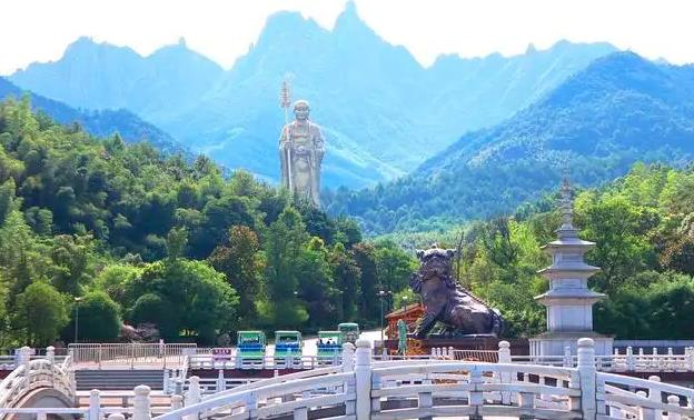 4,地藏菩萨圣像景区又称大愿文化园,位于山下游客服务中心旁边。是一个4A级景区,独立售票。园内沿中轴线可参观线路约2千米,有五通桥、牌坊、弘愿堂地藏文化展示中心、佛光池、莲花净土、大愿广场、八功德水九华飞天音乐喷泉表演等景观,最终到达99米高地藏菩萨大铜像。这一景区需要四个小时左右。