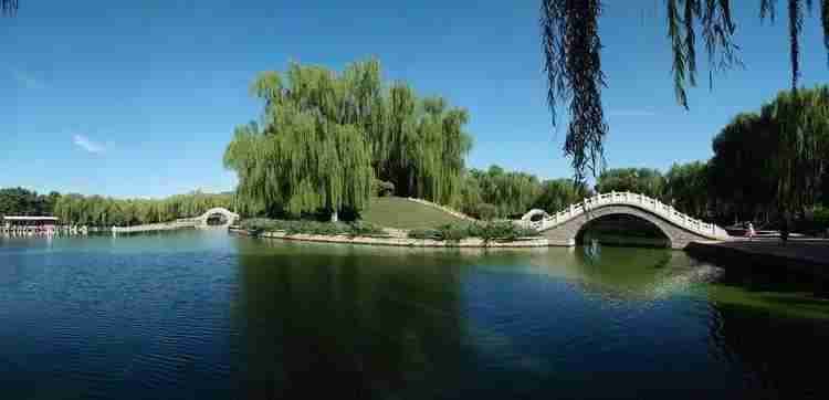 公园的主体布局就是一圈大大的湖围着两座小山,小山上树木繁茂。应该是挖湖筑山那种,因为整个安国甚周边数百里找不到一处有山或有坡度的地方。公园是那种最普通,也是最规范的,一切看上去都那么布局合理赏心悦目湖里水比较清,湖边有许多人钓鱼弄虾,我第二次去时同家人坐脚踏船绕湖游了一圈,湖道岸上绿树成荫,不时传来练声者阵阵歌声,湖面微风习习,偶见恋人相依细语,好不富有诗情画意,走走停停花了一个多小时。