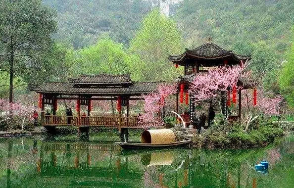 东晋大诗人陶渊明在《桃花源》记中曾描绘过一个令世人无比向往的桃花源,据考*,便是现在的常德桃花源风景区。它位于常德市桃源县,始建于晋代,到唐宋时发展到鼎盛阶段,在元代时毁于战乱,明清以后又开始复兴。历代以来,孟浩然、李白、韩愈、苏轼等大文豪都曾到过这里并留下墨宝。