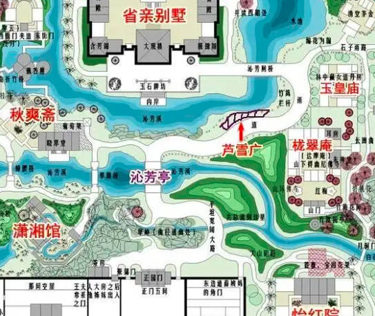 就在大观园的中轴线上,是《红楼梦》中林黛玉建桃花诗社,和贾宝玉约会的地方。