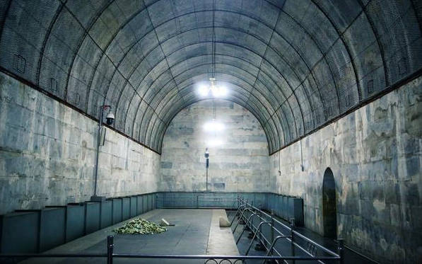地宫是定陵的主要部分,深27米,由前、中、后、左、右5个厅组成,建筑面积1195平方米。其中左、右配殿是相对称的两个殿,中间各自有一个用汉白玉垒砌的棺床,两配殿有甬道与中殿相通。中殿内有3个汉白玉石座,并摆放皇帝和皇后的五供和长明灯。