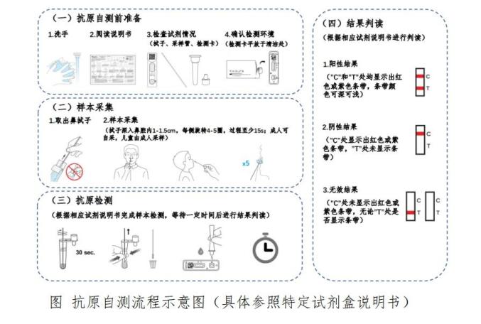 仔细阅读抗原自测试剂配套说明书及抗原自测相关注意事项。