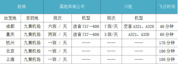 九黄机场航班信息(仅供参考,详细信息请咨询九寨沟黄龙机场)