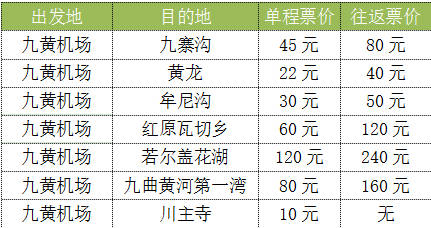 游客朋友们在乘飞机到达九黄机场后,还要转乘客车才能到达九寨沟景区。同时在九黄机场亦可乘车直达黄龙、牟尼沟、红原瓦切乡、若尔盖花湖、九曲黄河第一湾以及川主寺等地,详情如下: