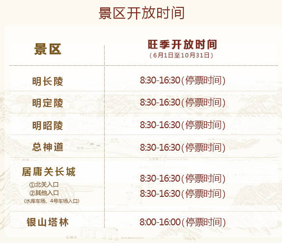 目前只开放了明长陵、明定陵、明昭陵、总神道、居庸关。