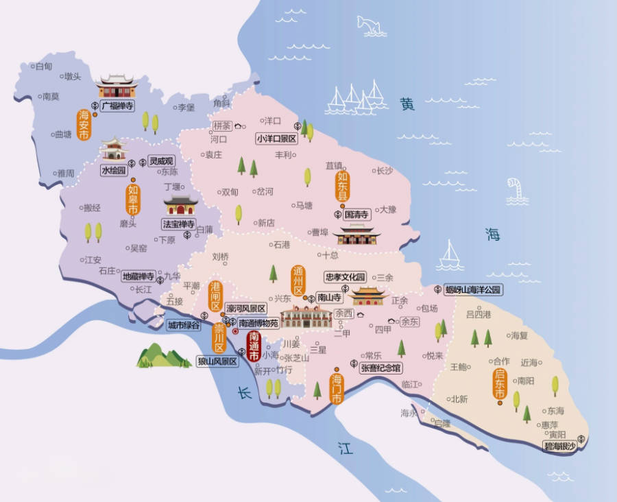 南通是我国第一批对外开放的14个沿海城市之一,长江岸线226千米,有“北上海”之称,好多小伙伴不知道南通是哪个省,南通位于江苏东南部。