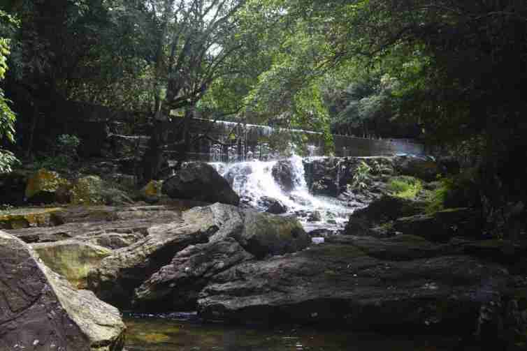 宝鼎瀑布发源于宝鼎山,宝鼎瀑布群由九级瀑布组成,延绵一千多米,构成了一幅约隐约现的美妙、奇特的长画卷。