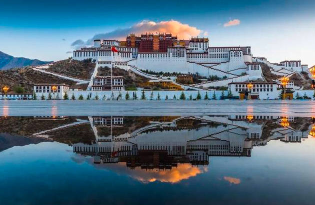布达拉宫广场可以拍摄到布达拉宫正面图,是一个非常“规矩”的拍照方位。布达拉宫广场和布达拉宫其实还隔着一段距离,中间并不相同,还隔着一条街的距离。前两年网上一直流行在布达拉宫广场前拍布宫的倒影照,在这里很容易就可以拍出全景照。