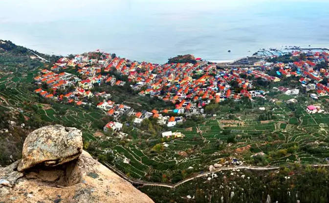 这里红瓦、绿树、碧海、蓝天像是一副永恒的画,美不胜收。村中茶田环绕红瓦民居,使山村景色多了一些妩媚。