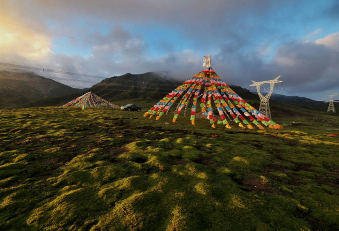 位于青海省海南藏族自治州贵德县,拉脊山是青藏第一关,也被称为“雄鹰飞不过去的地方”。夏日的拉脊山风景独好,蓝天白云下,五彩的经幡随风飘扬,连绵起伏的高山草原,宁静且治愈,适合放松身心。