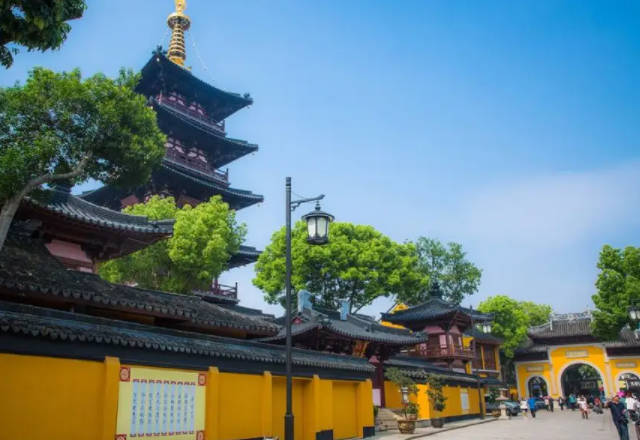 寒山寺初建于唐代贞观年间,二次重建于清代光绪年间,位于苏州市姑苏区,寺内古迹甚多。还记得张继的那句“月落乌啼霜满天,江枫渔火对愁眠。姑苏城外寒山寺,夜半钟声到客船”经典诗句吗?