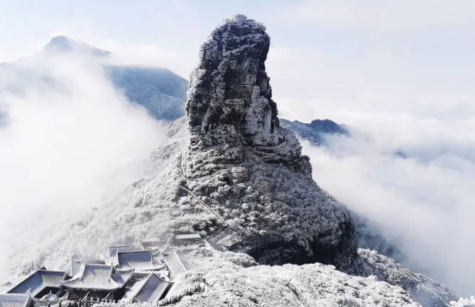 4、冬天,冬天是梵净山的淡季,人少幽静,可以看到山舞银蛇,梵净山雪景犹如山水画一般美丽。