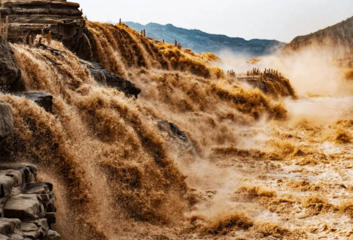2、夏天,因为降水的增多,黄河水才真正的变黄,壶口瀑布的大水一泻千里,万马奔腾,让你震撼的同时也会感觉到腿软;