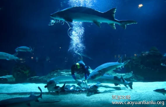 4、国宝中华鲟馆——用过世界最长的亚克力整体展窗,近观中华鲟王的场馆。