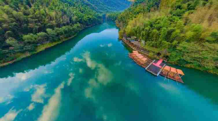到达了南山竹海,引入眼帘的便是成片成片的竹林,走近竹林间的小道,满目皆是高大翠绿的竹子,连阳光都被遮住了,立刻感觉到很凉快。小道旁,有一面湖水叫“静湖”,由于四周茂密竹林的倒映,湖水呈碧绿碧绿的,非常清澈。我们乘坐一片竹筏,顺着湖水往下漂。抬眼望去,四周的竹海波浪起伏,清清的绿水在脚下流淌,真是“舟在碧波上,人在画中游”。
