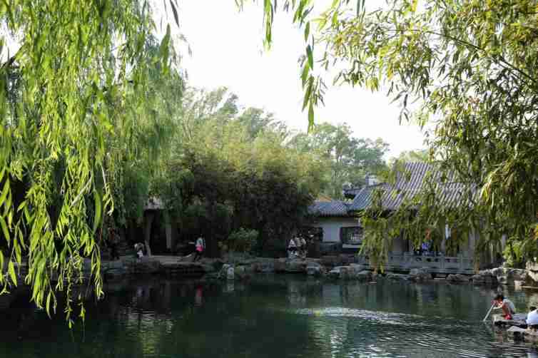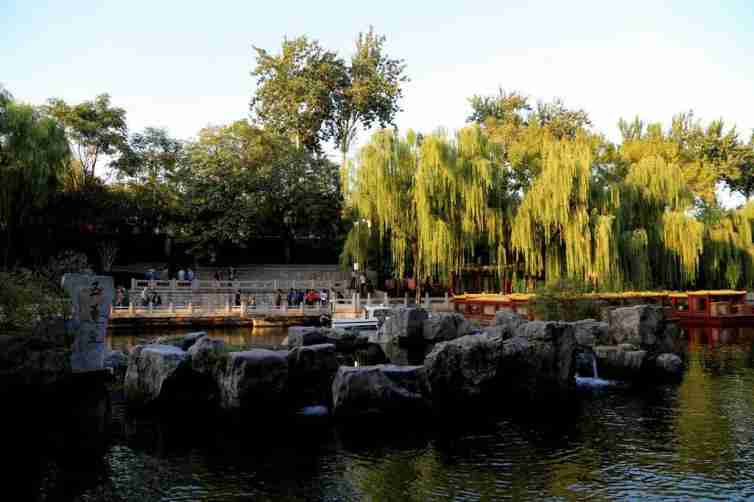 一路向北来到大明湖,这里微波起伏,绿柳轻拂,泛舟湖上。